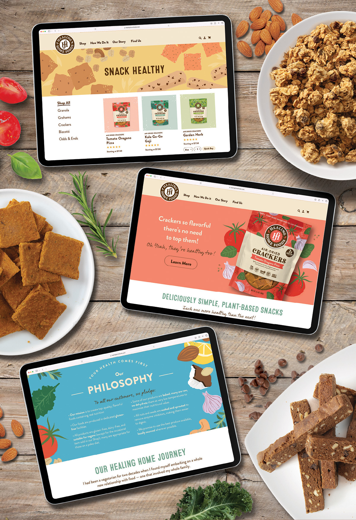 Finally, we brought everything together with a fully redesigned website. Built to modern e-commerce standards, the new site is mobile-friendly, easy to navigate, and tells the Healing Home Foods story in a clear and compelling way. It now functions as both a storefront and a storytelling platform, helping customers connect with the brand on a deeper level.